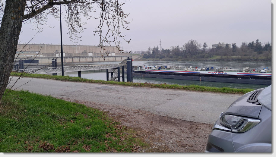 A 15h30, nous voici au sud de Valence à l'aval du barrage de Beauchastel que nous connaissons bien et nous y passerons la nuit.