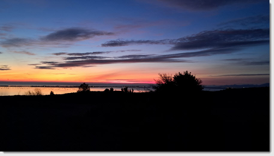 Il fait 2° sous un léger vent de NE mais toujours pas de soleil. Normalement, nous le retrouverons demain au bord de la Méditerranée.