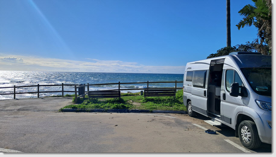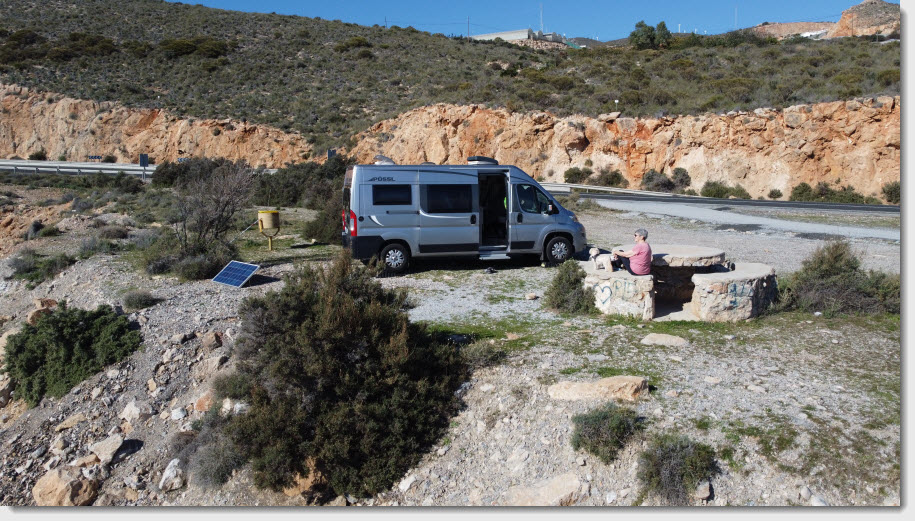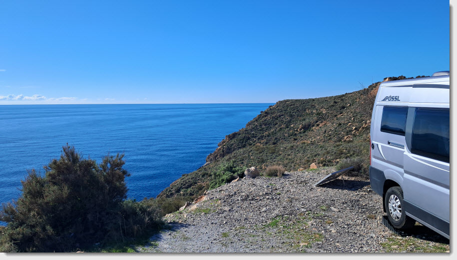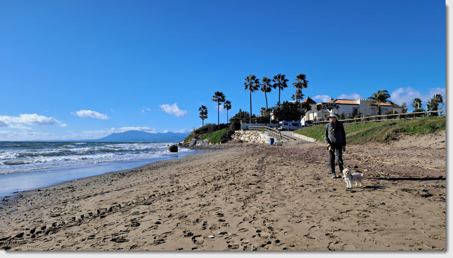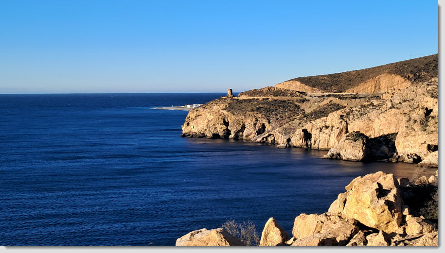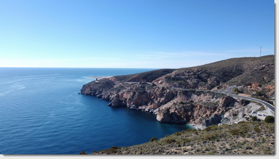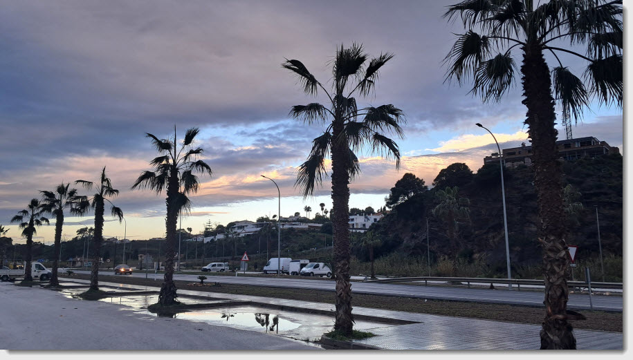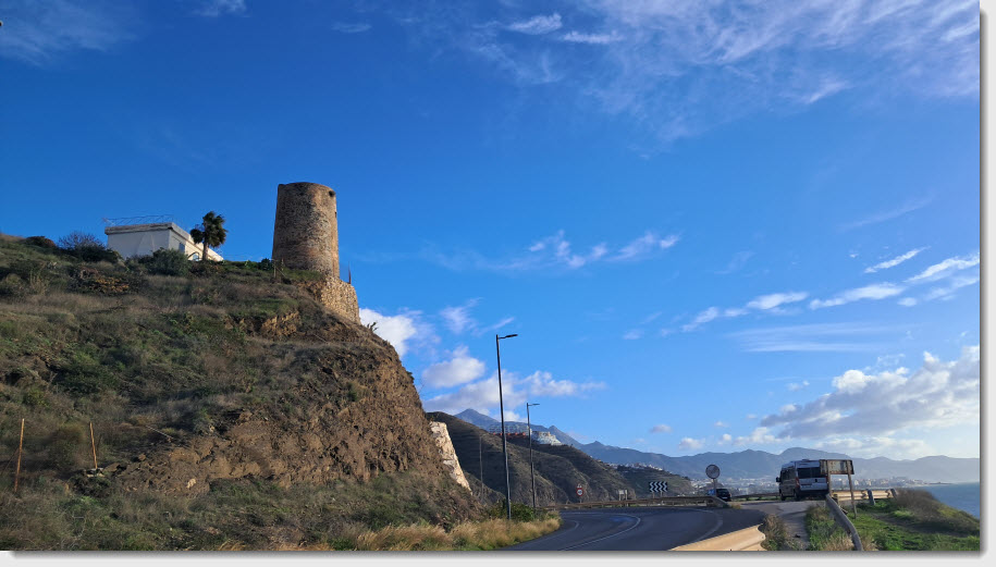 Question météo, nous avons eu de la pluie vers 6h du matin puis des éclaircies sont visibles au loin. Nous quittons Benajarafe vers 9h10 et nous continuons en direction du sud.