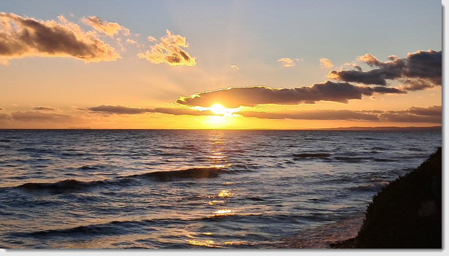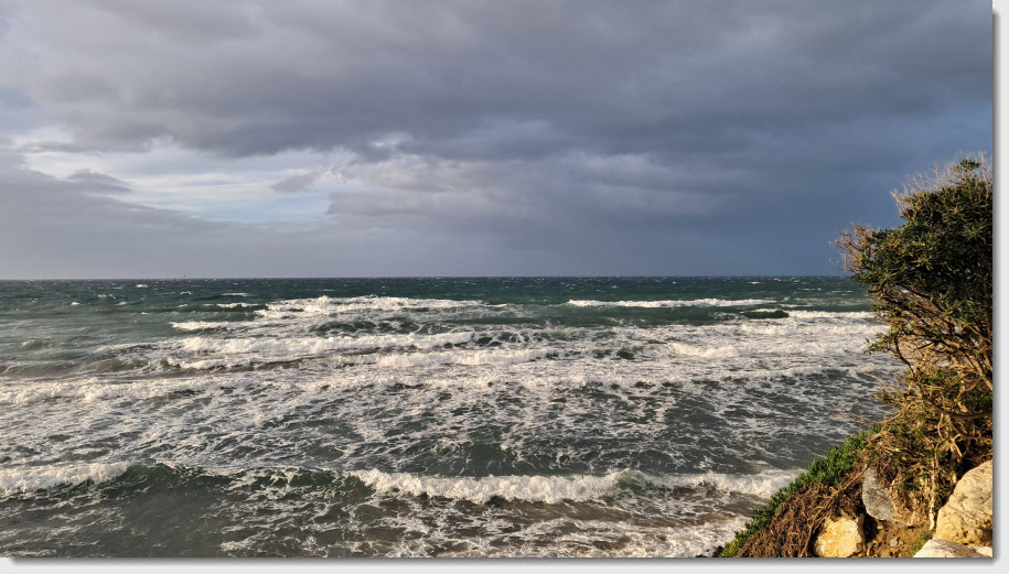 Le temps est toujours variable avec un vent modéré de secteur ouest et des pluies orageuses sont prévues pour la nuit. La température est de 17°, très agréable.