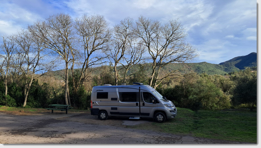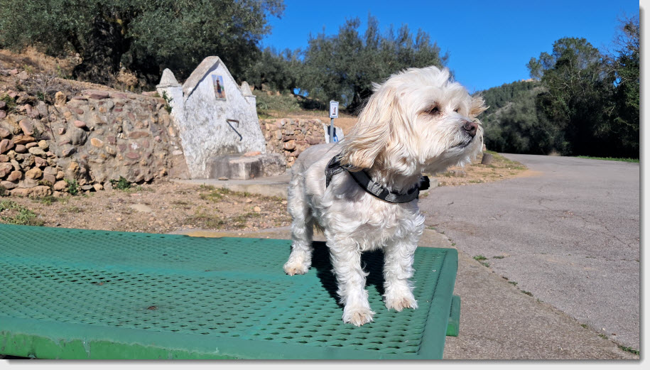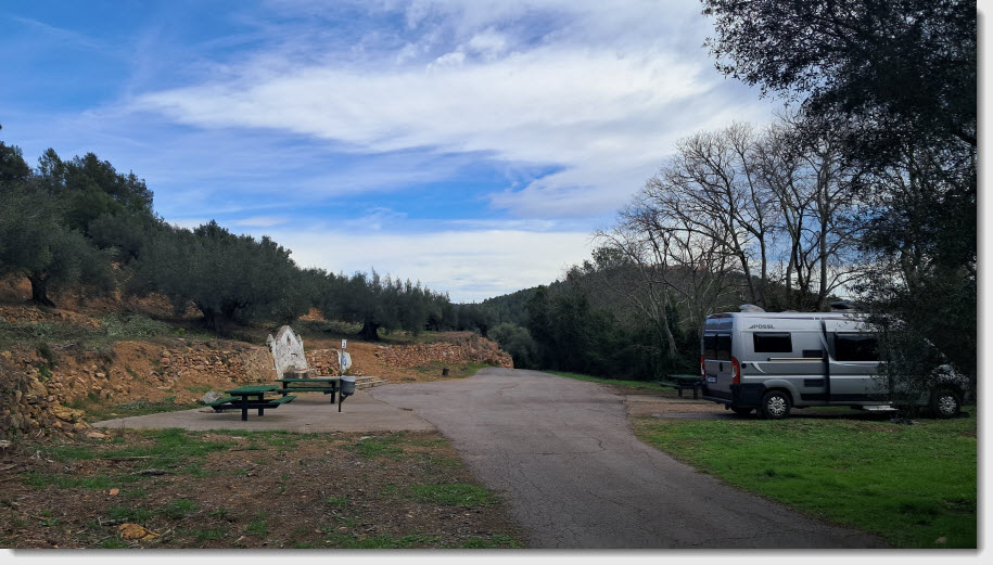 Nous repartons et le vent est déjà assez fort en plaine. Nous avons décidé de retourner près de l'Ermita de Santa Cristina où nous serons à l'abri du vent comme l'autre jour.