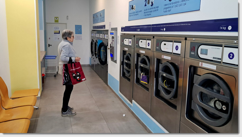 Aujourd'hui, c'est jour de lessive à Benicarlo et en matinée, nous allons dans une lavanderia et à 11h30 tout le linge est propre et sec.